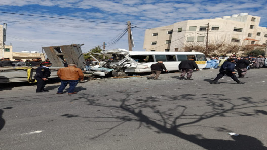 وقالت مديرية الأمن العام لـ "المملكة"، إنه "يتم التعامل مع الحادث من قبل المجموعات الأمنية والعمل على انسيابية حركة السير".